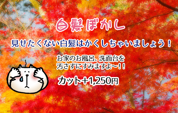 初石店のおすすめ 限定Newメニュー リラクシングマッサージ 白髪ぼかし